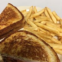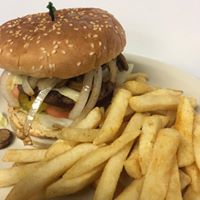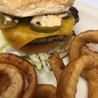 Two 6 oz. homemade hamburger patties, topped with your choice of American, Swiss, or Cheddar cheese, onions, lettuce, pickles, tomatoes, and served with fries. 14.99 Egg Burger Hamburger patty with one egg, cheddar cheese, hashbrowns, and bacon on a bun. Served with choice of potatoes. 13.99 Jalapeno Sriracha Burger A 6 oz. homemade hamburger patty topped with your choice of cheese, jalapenos, Sriracha sauce, onions, lettuce, pickles, and tomatoes. Served with fries. 13.99 Grilled Mushroom and Onion Burger Our 6 oz. homemade hamburger patty topped with grilled mushrooms and onions, American cheese, lettuce, pickles, and tomatoes. Served with fries. 13.99 Cheeseburger A 6 oz. hamburger patty, topped with cheddar or American cheese, onions, lettuce, pickles, and tomatoes. Served with fries. 12.99 Hamburger A 6 oz. hamburger patty, with onions, lettuce, pickles, and tomatoes. Served with fries. 12.29 Bacon Cheddar Burger A 6 oz. homemade hamburger patty, topped with cheddar cheese, bacon, lettuce, pickles and tomatoes, served with fries. 13.99 |